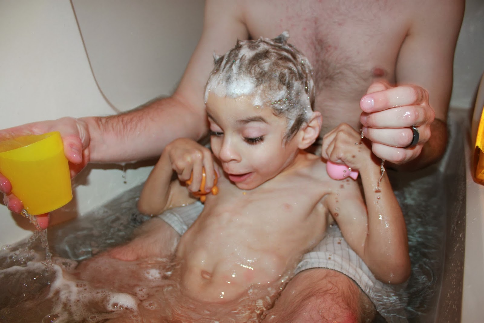 | He LOVES baths!! |